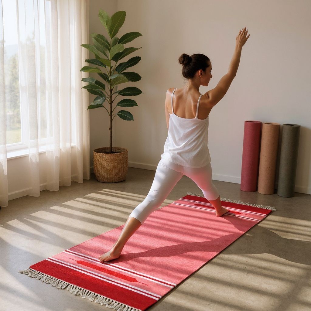 Cotton Handloom Woven Yoga Mat - Dark Red
