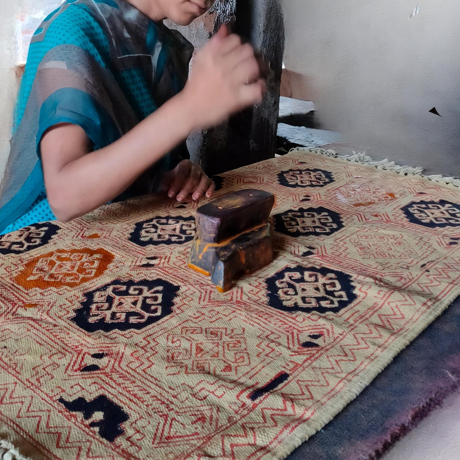 Artisans of Rajasthan make a mud-resist material using a mixture of desert sands called "Dabu”....