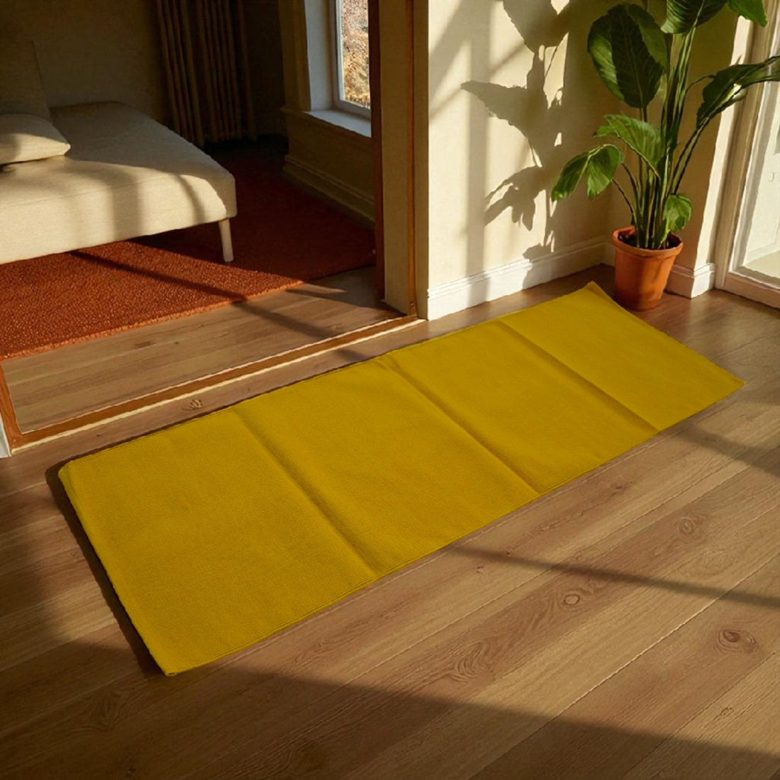 Cotton Handloom Woven Yoga Mat - Yellow