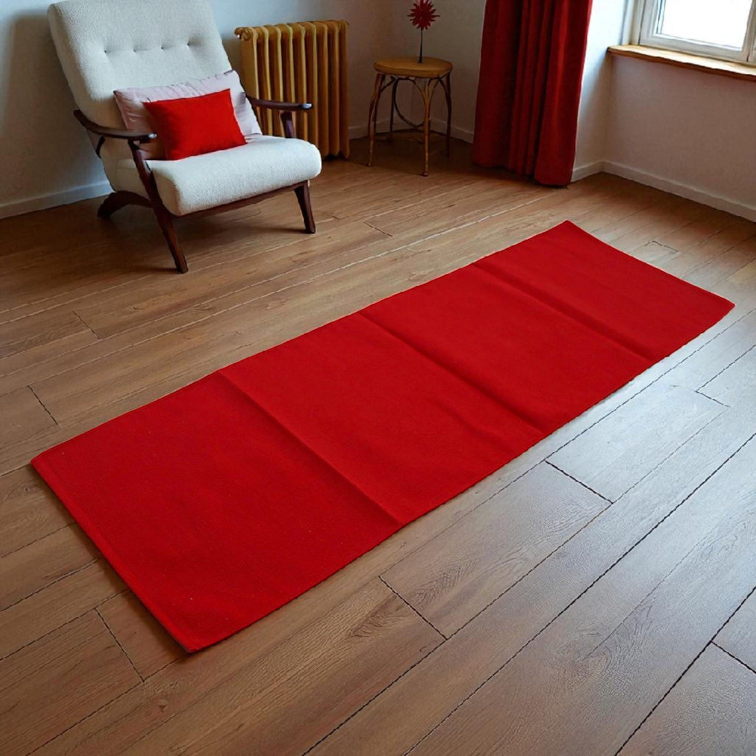 Dana Plain Woven Red Dhurrie Runner 2x6 Feet.