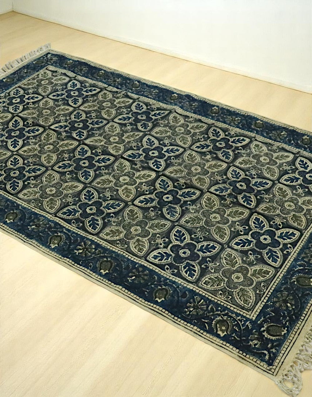 Nila Dabu Indigo Printed Cotton Dhurrie