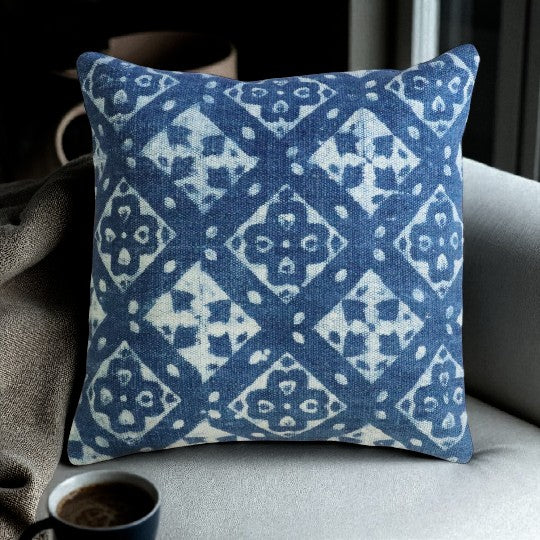 Geometric Dabu Indigo Dhurrie Cushion Covers