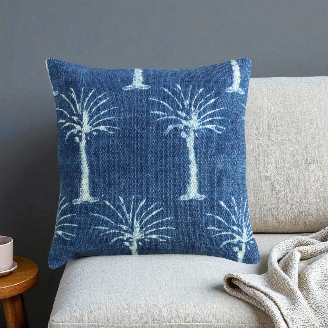 Palm Tree Indigo Dabu Dhurrie Cushion Cover