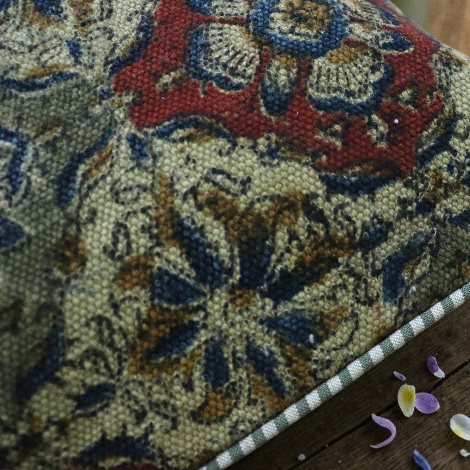 Originating in India, kalamkari is an ancient craft of hand painting or block printing textiles using vegetable colors. The word derived from the words Kalam, Meaning pen, kari , meaning workmanship. The very nature in which the printing and dying is crafted makes each piece is unique.