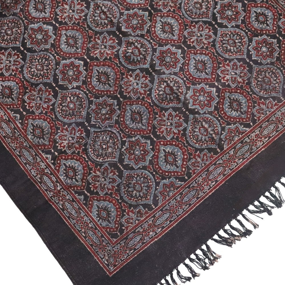 Black Ajrakh Block Printed Cotton Dhurrie