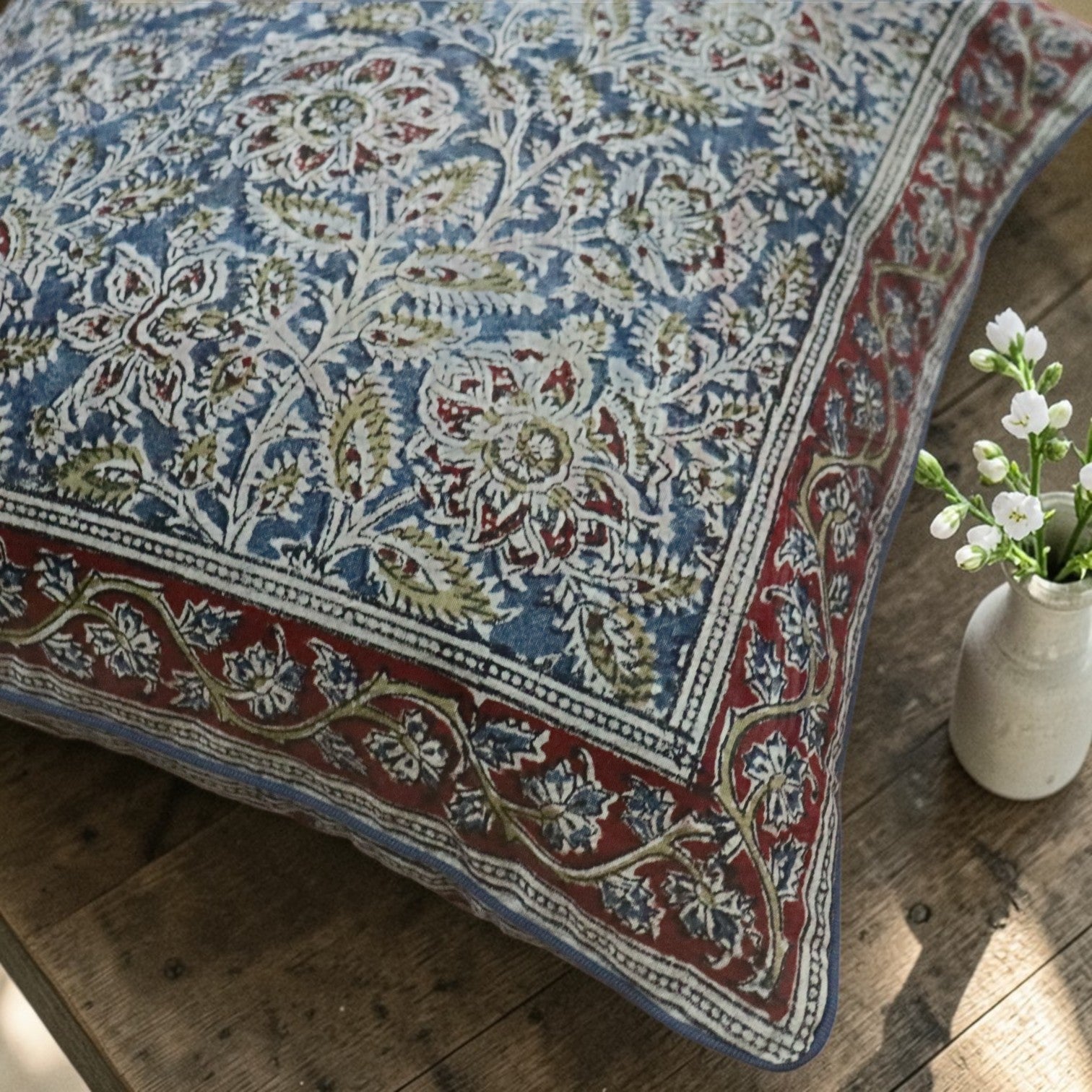 Originating in india, kalamkari is an ancient craft of hand painting or block printing textiles using vegetable colours. The word derived from the words Kalam, Meaning pen, kari , meaning workmanship.The very nature in which the printing and dying is crafted makes each piece is unique.