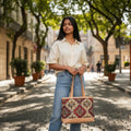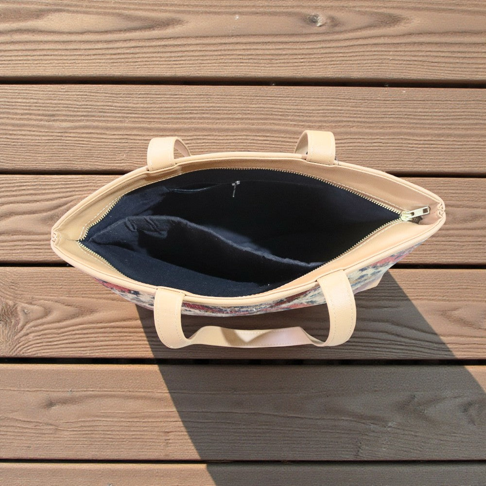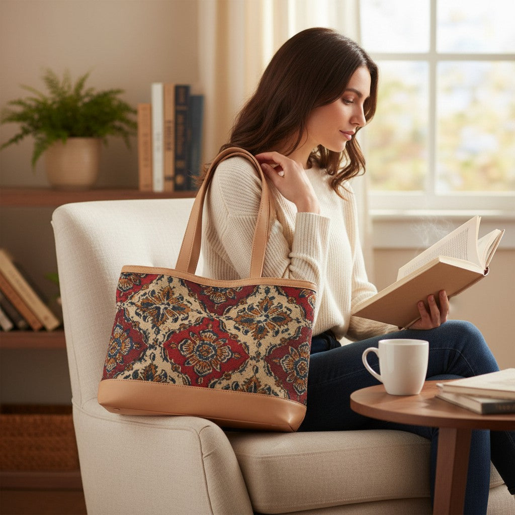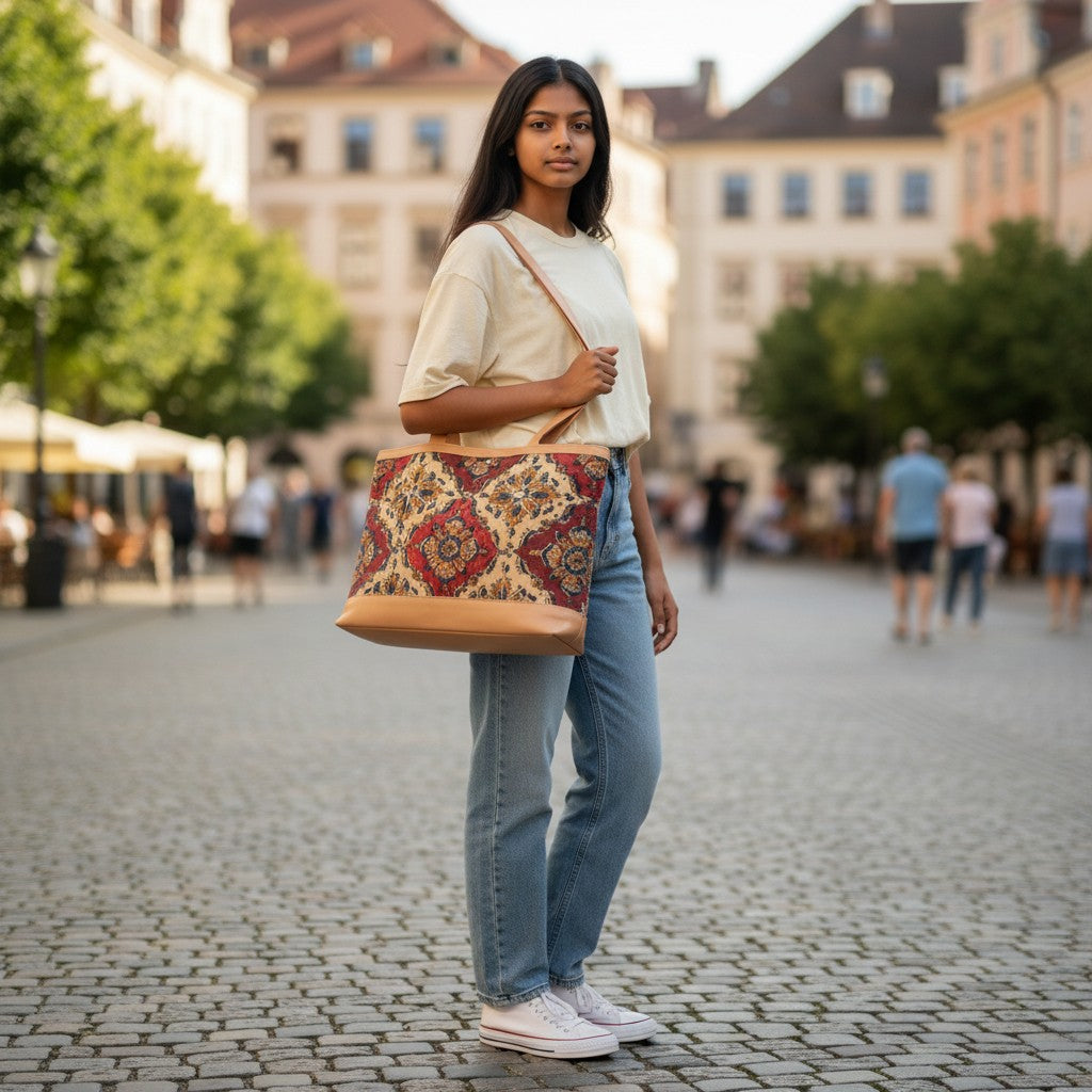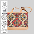 Material: Vegan Leather, Canvas, Cotton handwoven Dhurrie and Cotton Lining