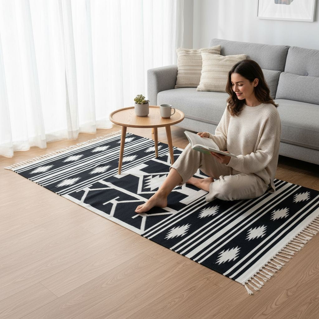 Cotton Woven Charvi Black & White Warangal Dhurrie