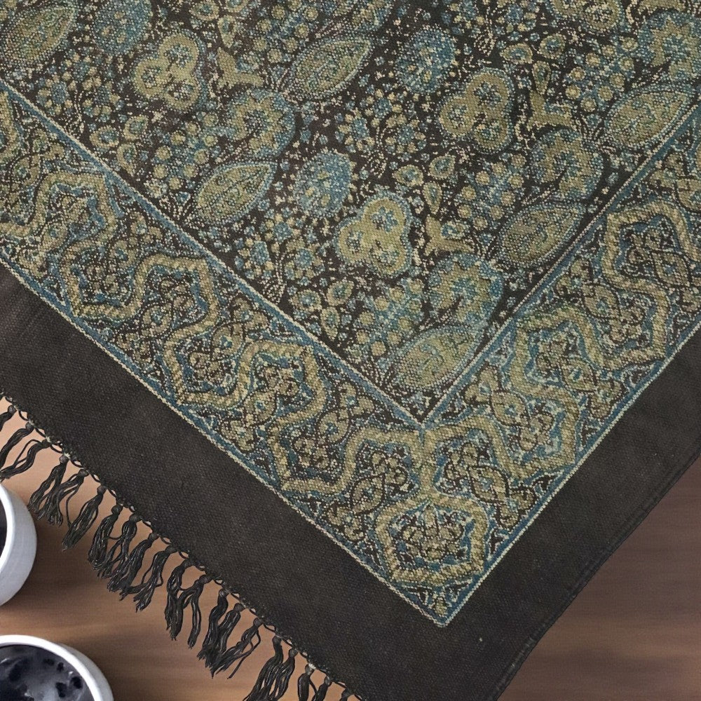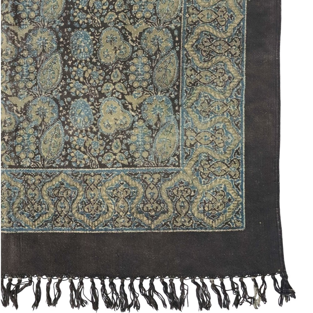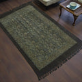 Floral Green Ajrakh Block Printed Cotton Dhurrie