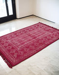 Fushia Kaira Cotton Woven Dabu Printed Dhurrie