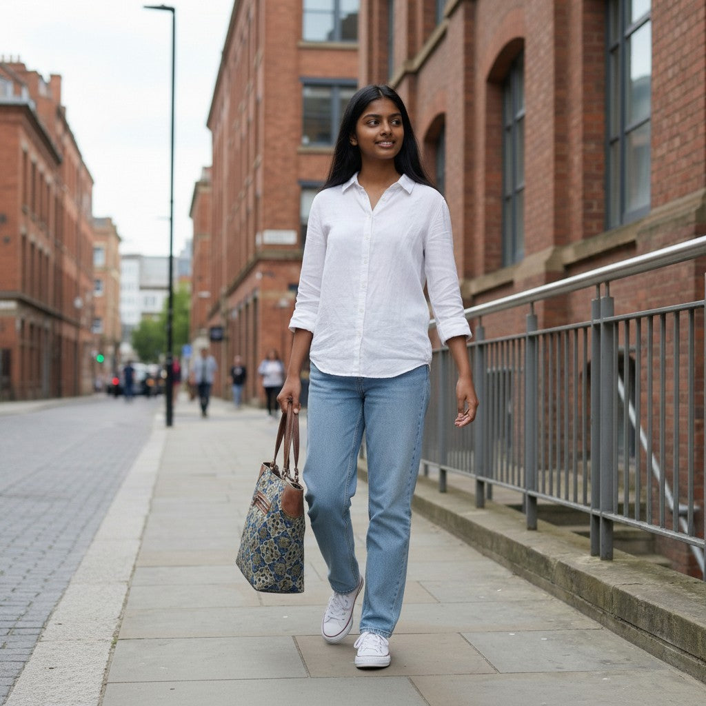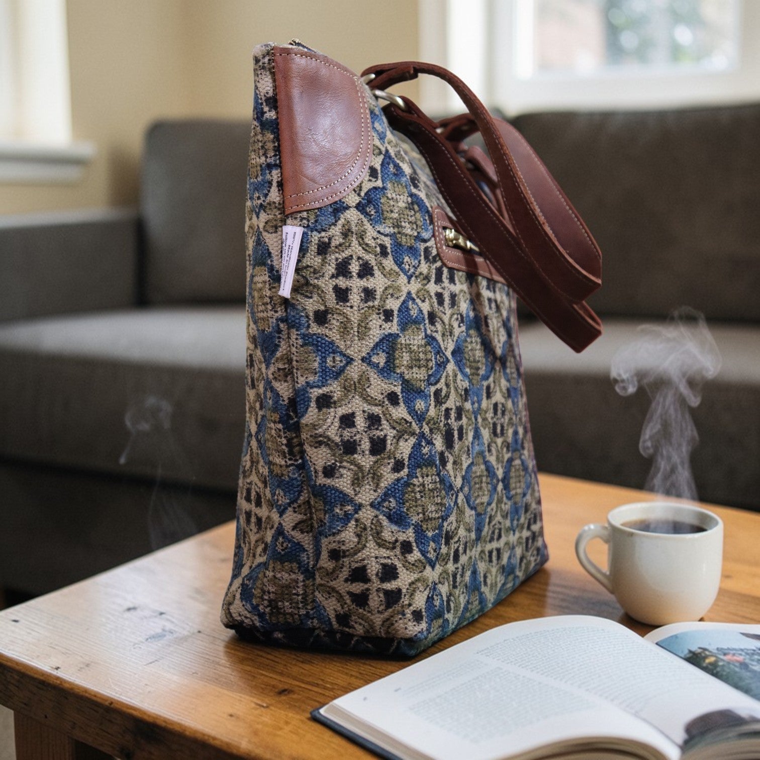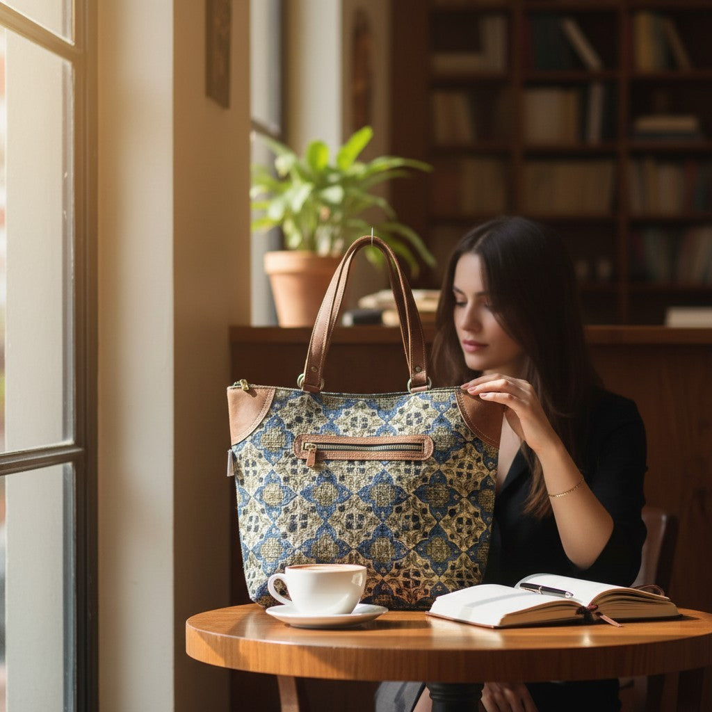 Indigo Kalamkari Tote Daily Use Dhurrie Bag