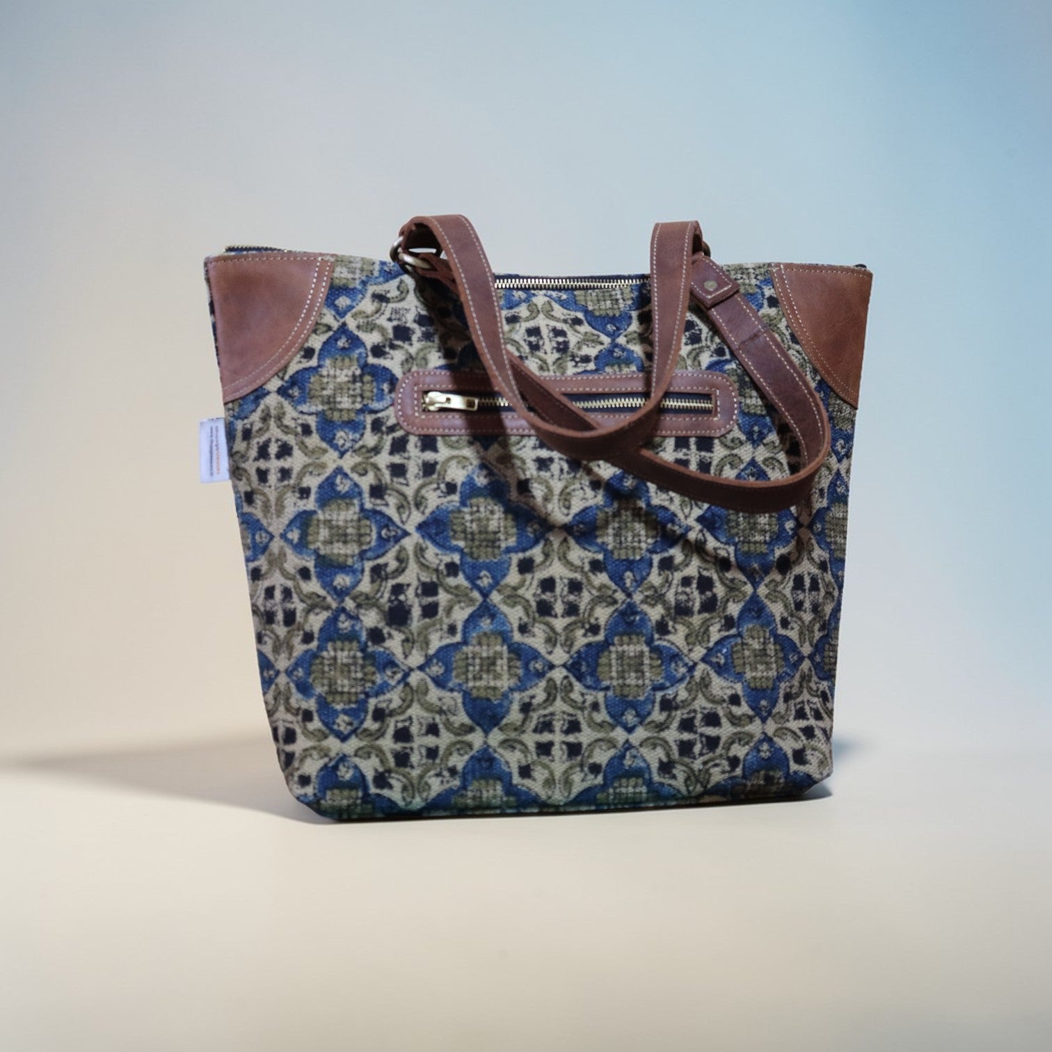 Originating in india, kalamkari is an ancient craft of hand painting or block printing textiles using vegetable colours. The word derived from the words Kalam, Meaning pen, kari , meaning workmanship. The very nature in which the printing and dying is crafted makes each Bag is unique.