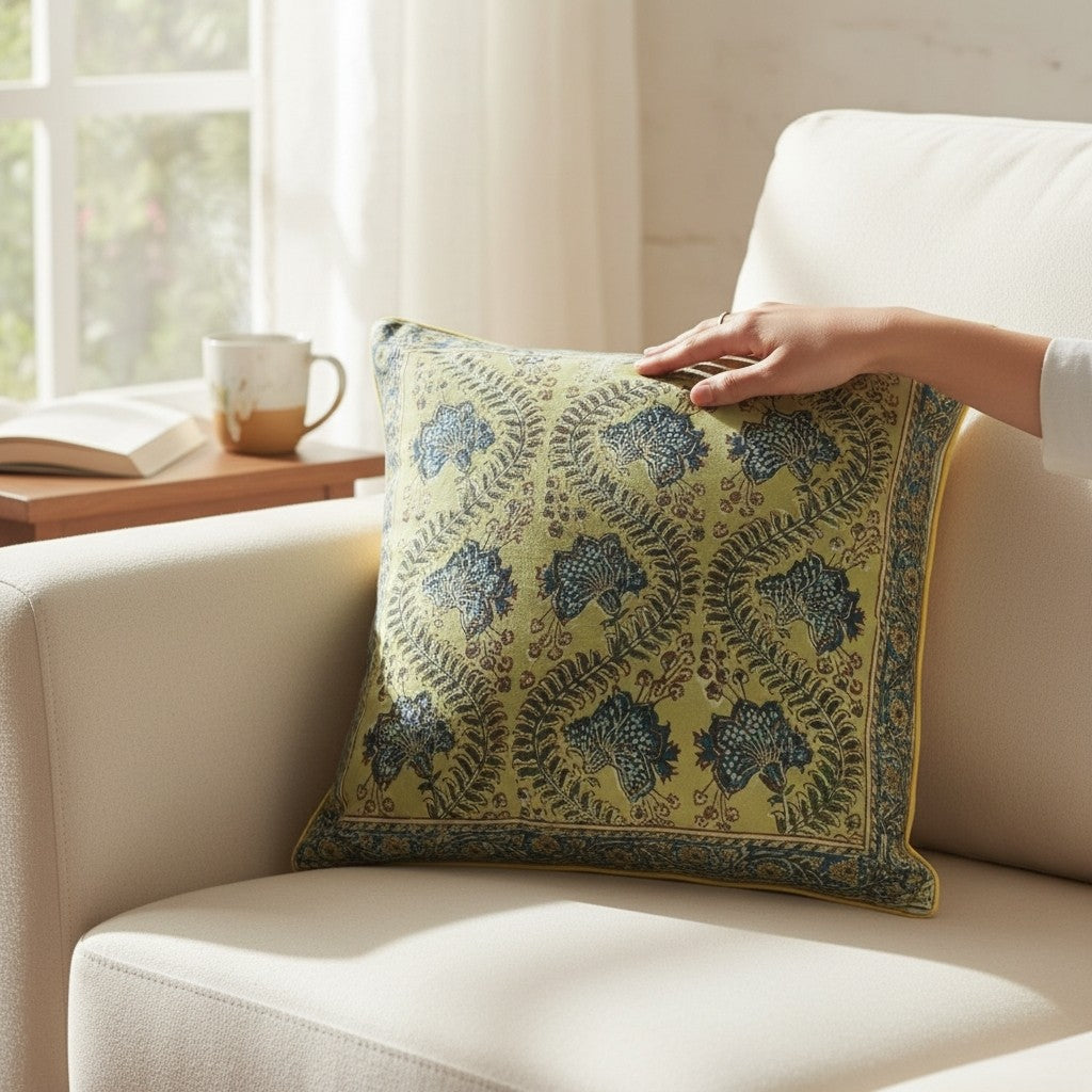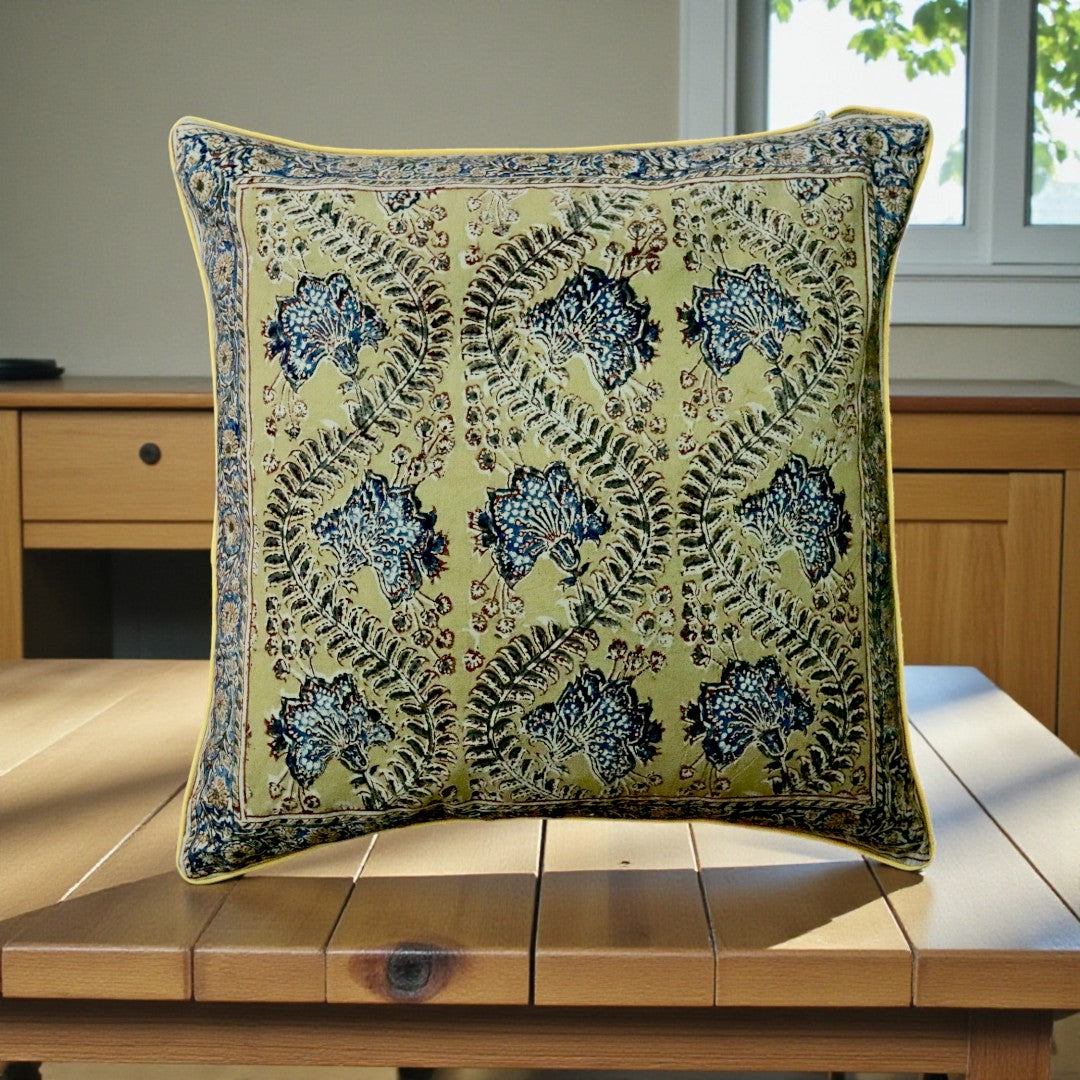 Ocra Grey kalamkari cushion covers