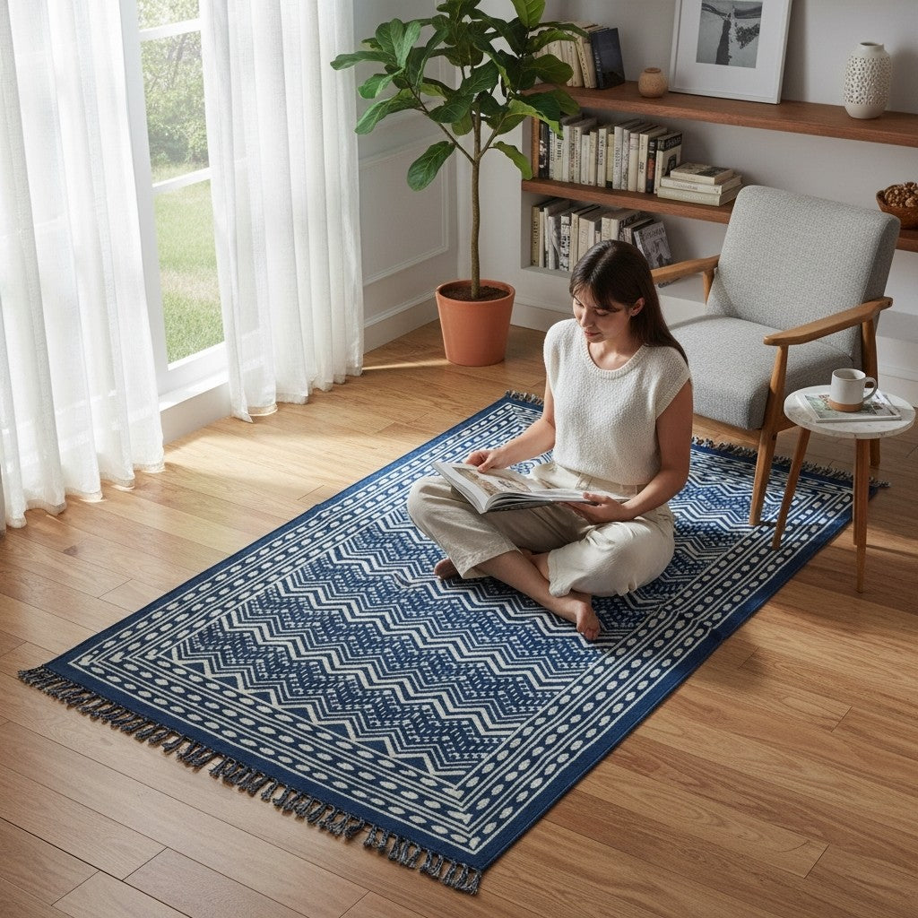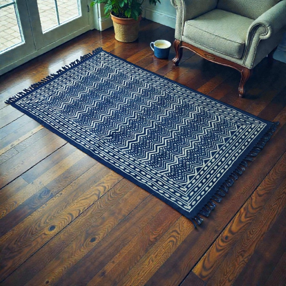 Pari Dabu Indigo Printed Cotton Dhurrie