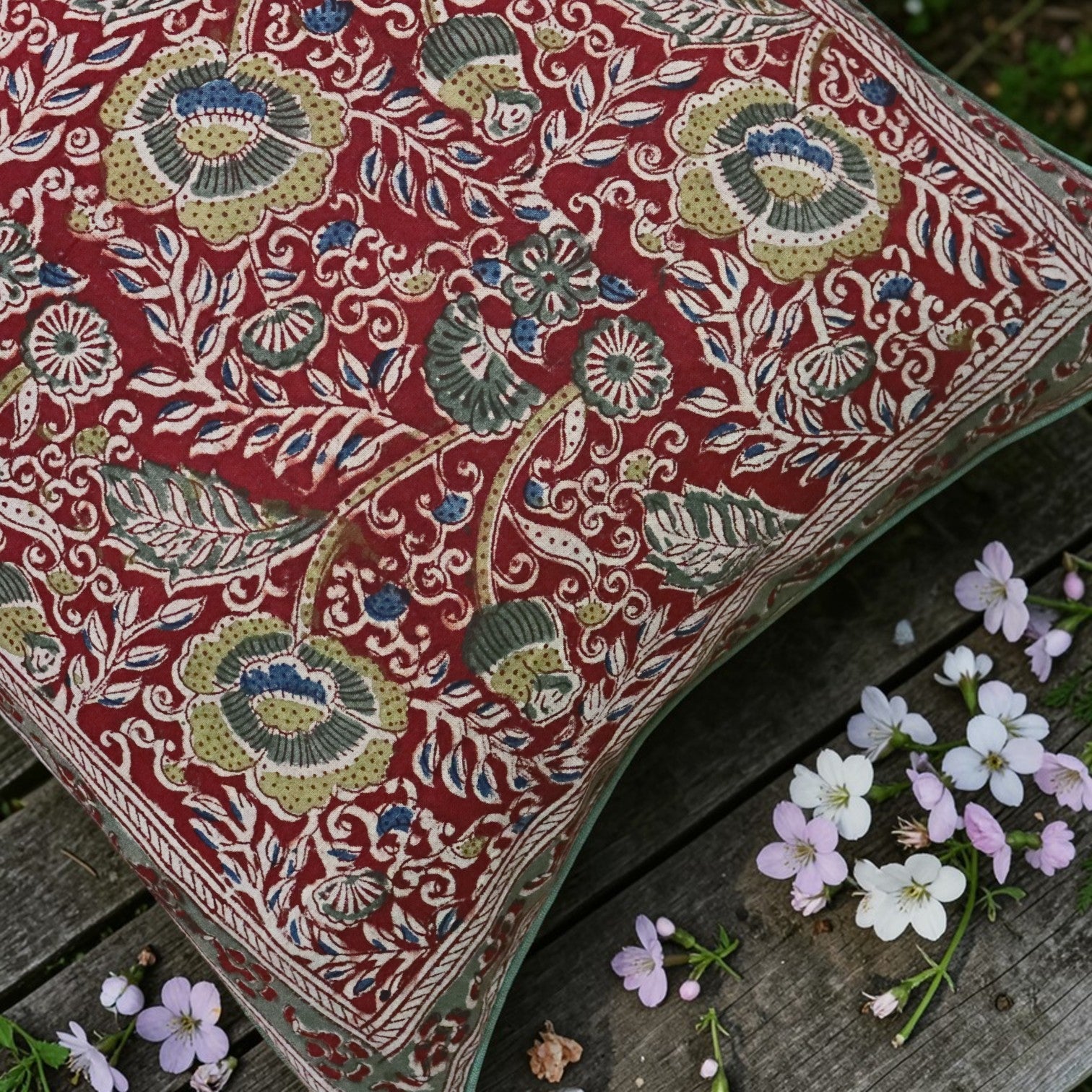 Originating in india, kalamkari is an ancient craft of hand painting or block printing textiles using vegetable colours. The word derived from the words Kalam, Meaning pen, kari , meaning workmanship.The very nature in which the printing and dying is crafted makes each piece is unique.