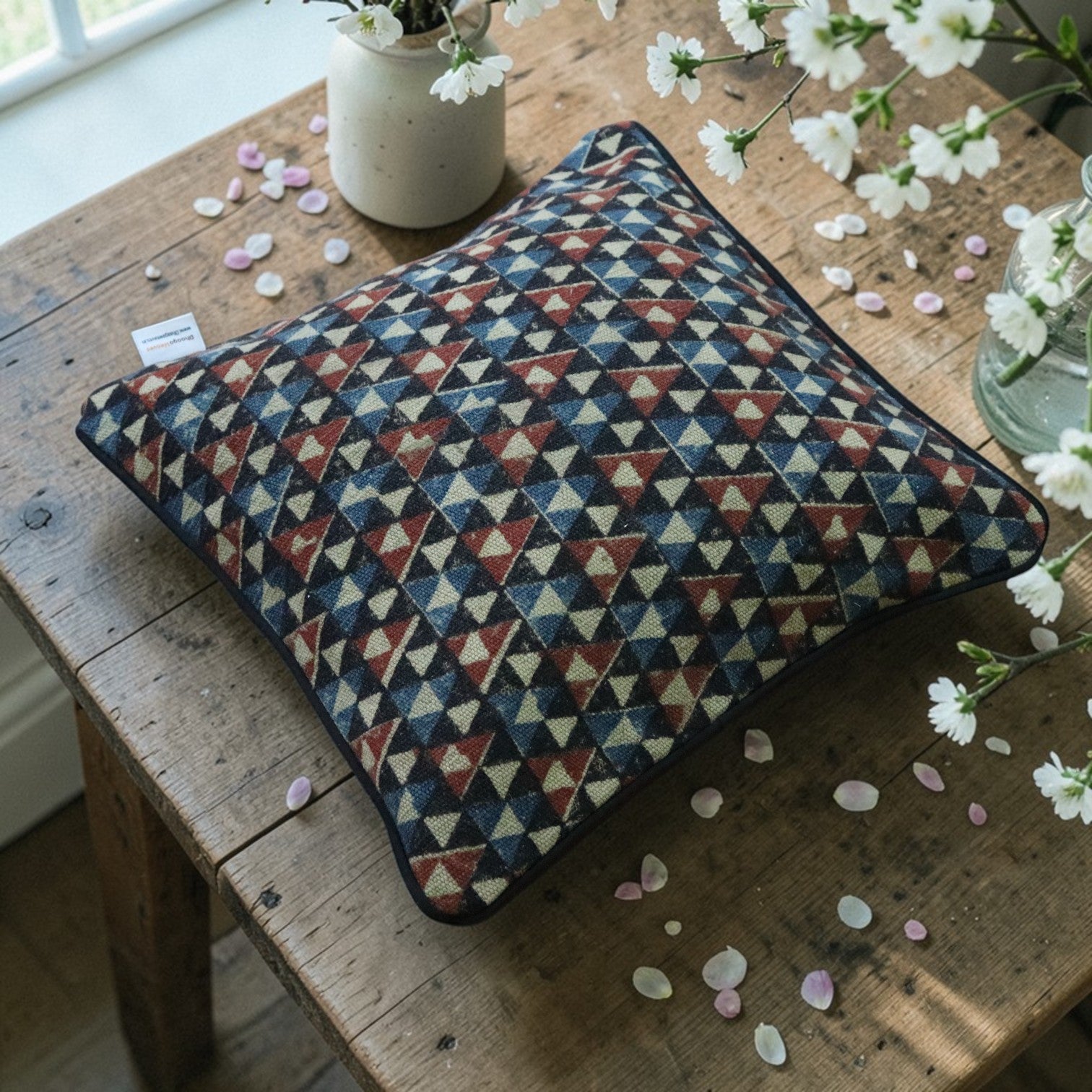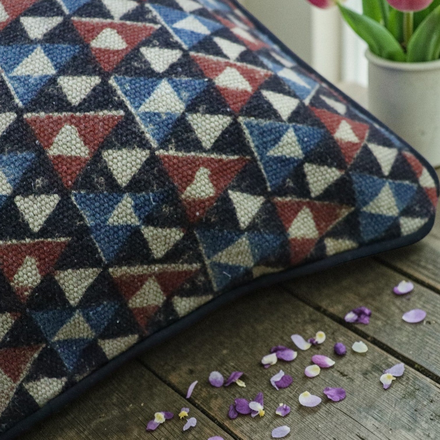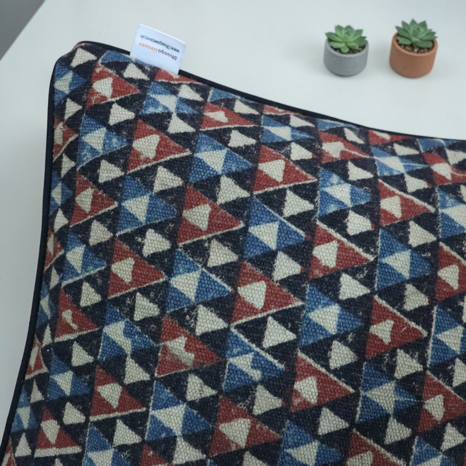 Rina Ajrakh Block printed Dhurrie Cushion Cover