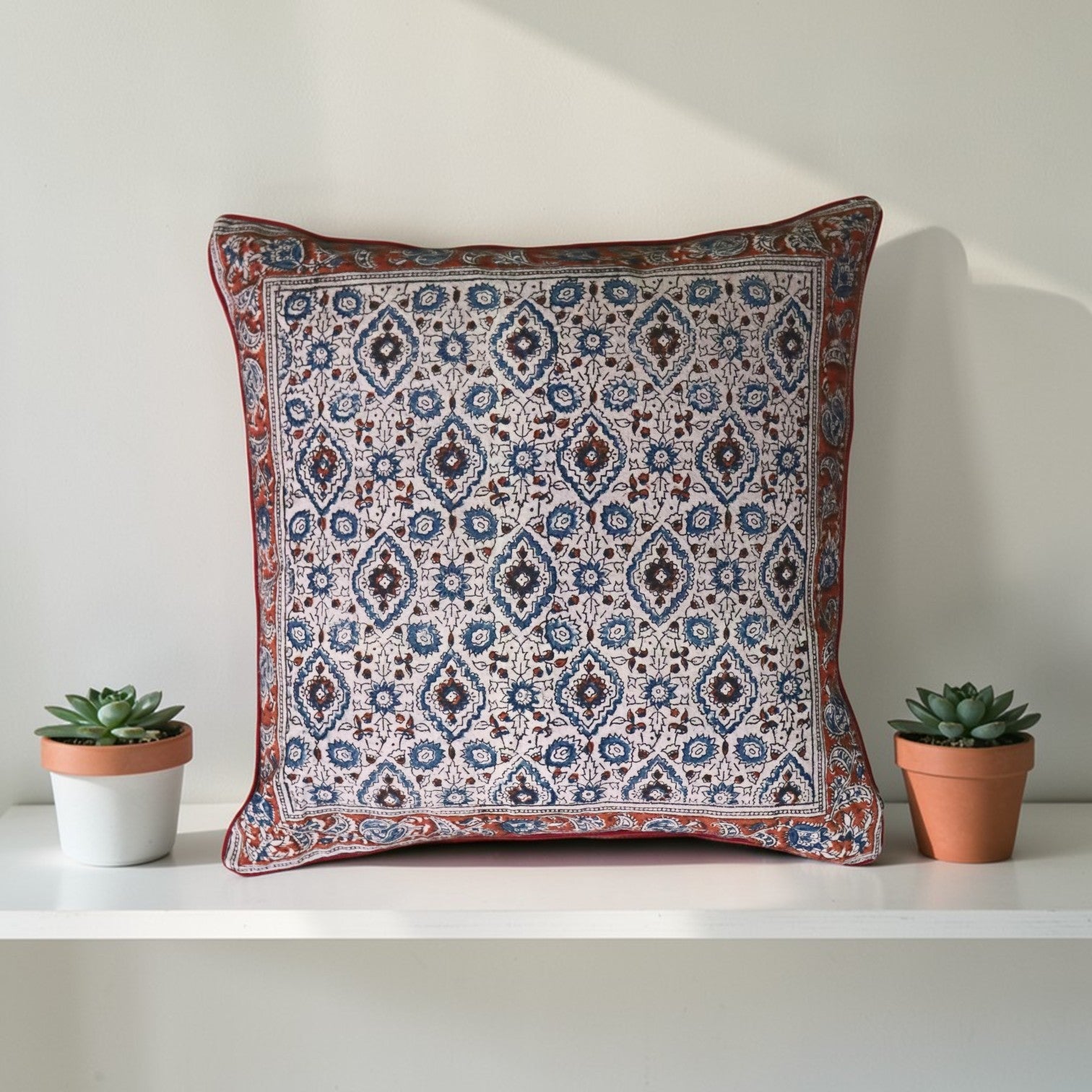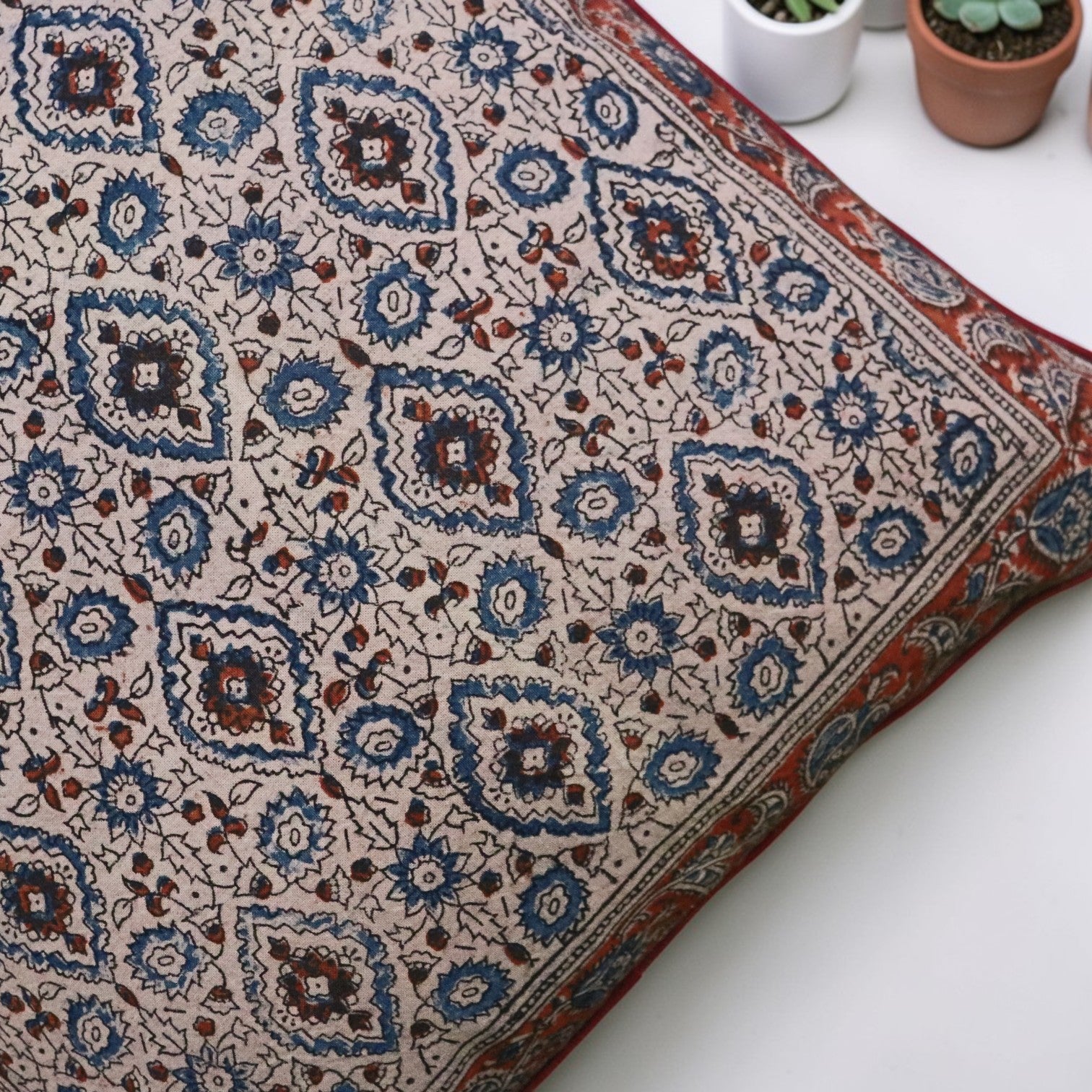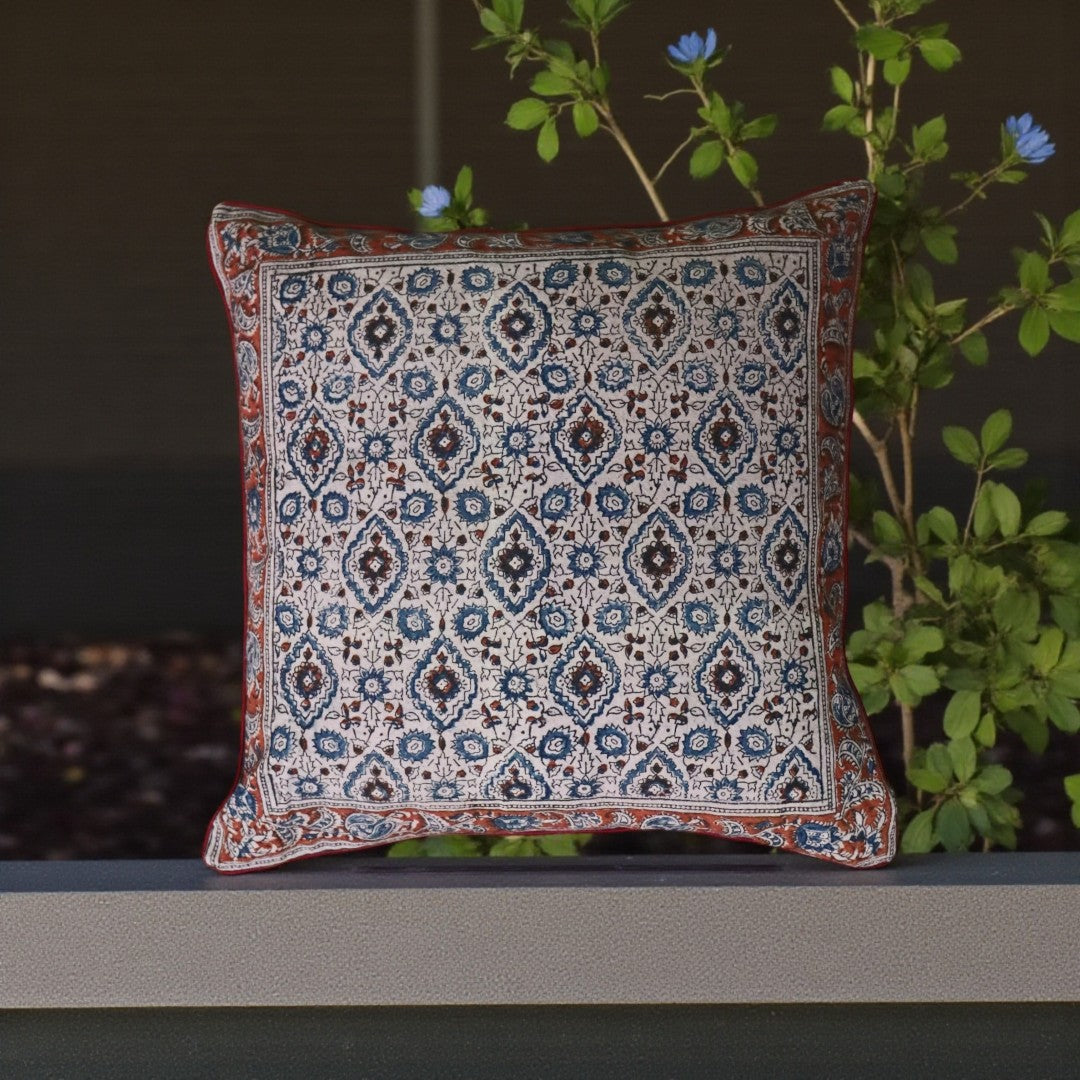 Rust Blue kalamkari Cushion Covers