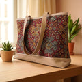 Originating in india, kalamkari is an ancient craft of hand painting or block printing textiles using vegetable colours. The word derived from the words Kalam, Meaning pen, kari , meaning workmanship. The very nature in which the printing and dying is crafted makes each Bag is unique.